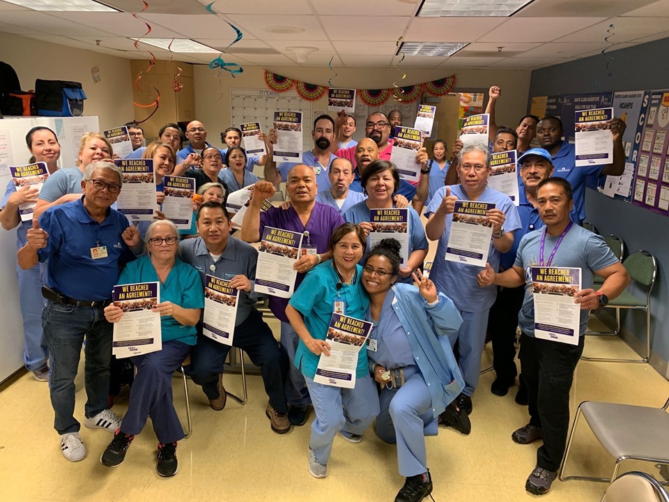 Photo of Santa Clara Kaiser EVS workers celebrating their coalition’s recent win