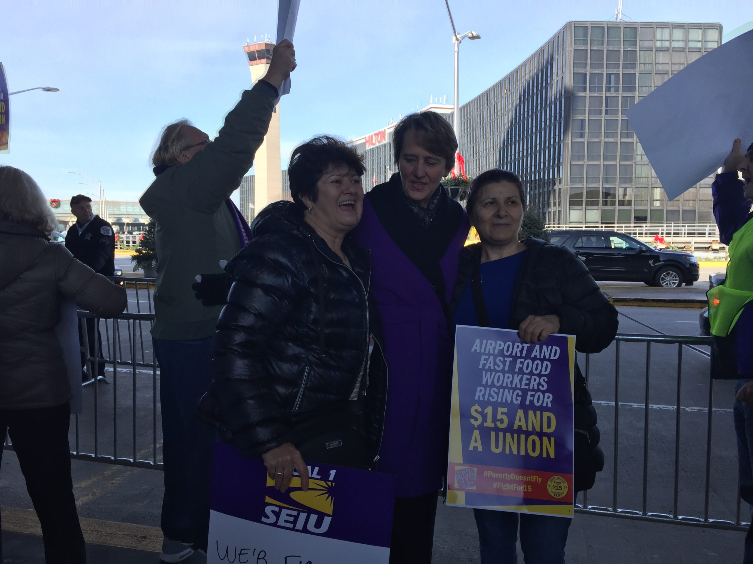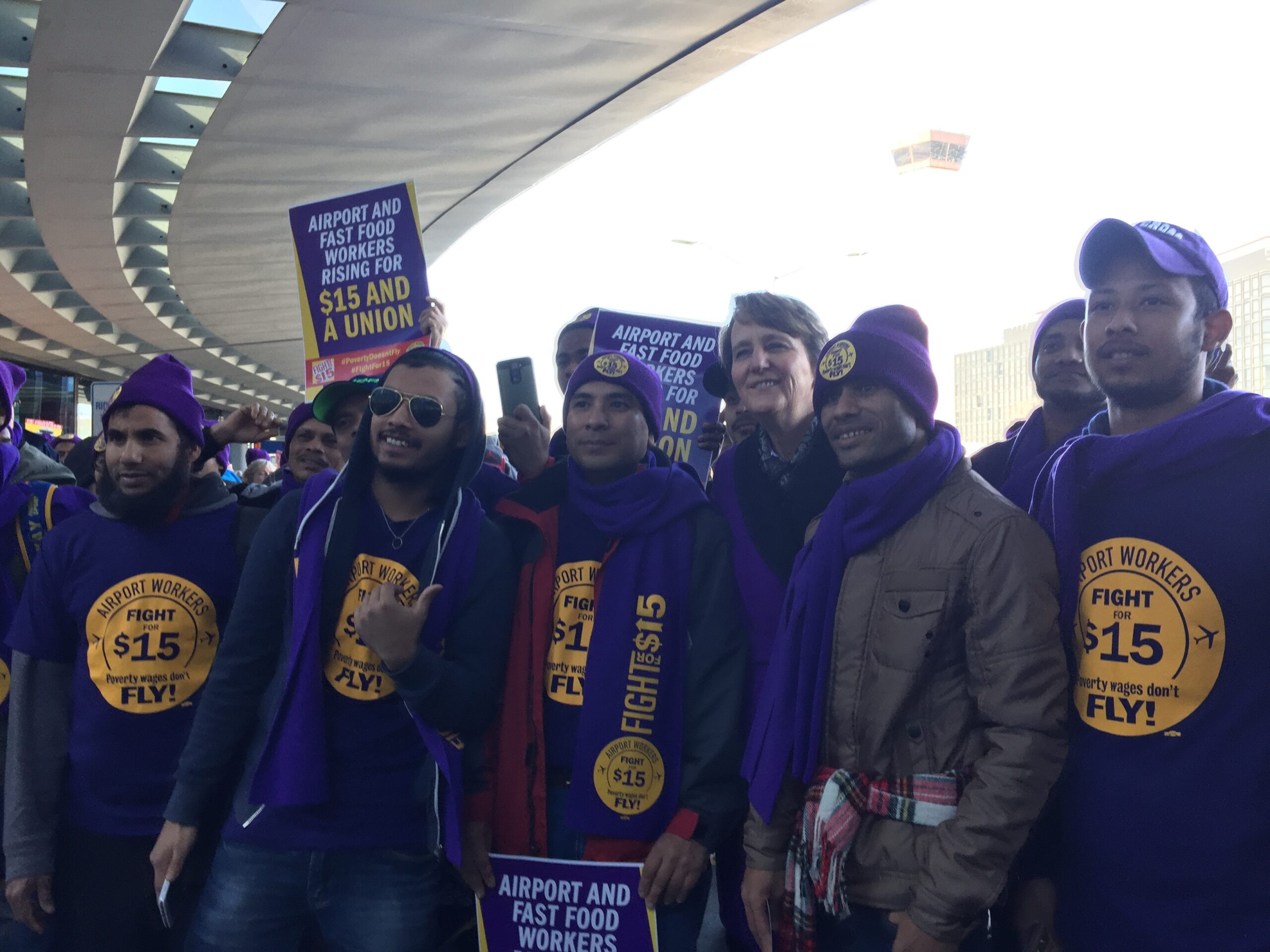 Kisha Rivera, a cabin cleaner at O’Hare, went on strike for the first time and was fearless speaking to more than 25 reporters outside the airport with thousands of workers backing her. She told me she was sick of being treated like the garbage she picked up from the cabins. She didn't want to lose a day’s pay, but she walked through her fear of losing this job to strike and stand up for a better life. The airlines needed to make these poverty jobs into living wage jobs once and for all. These two women made me think of the thousands of individual acts of courage that occurred at 20 airports and 340 cities across America. The strikes and arrests generated massive media coverage. People who went on strike or took action gave hundreds of interviews to take the day’s core message – We Won’t Back Down – directly to the public.