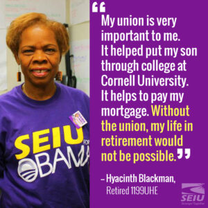 Hyacinth Blackman is a retiree member of SEIU 1199UHE.