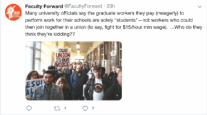Since 2016, thousands of graduate workers at colleges nationwide have joined together in unions, negotiated collective bargaining agreements with their university employers, and made significant improvements to their abysmal pay and poor working conditions. But especially if grad workers are no longer deemed to be employees, and collective bargaining is no longer a requirement for universities, the workers promise that both alternative organizing such as ‘direct join’ models and collective actions such as sit-ins will continue—and will continue to win.
