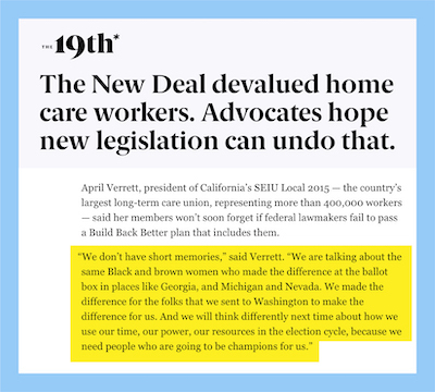 Across the country, home care workers are demanding Congress pass Build Back Better, with an essential investment in the care economy. This wildly popular investment in care will lead to real change for home care workers, including good union jobs, and families in need of high-quality, accessible care.