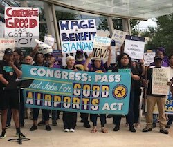 They’re also calling on Congress to do its job by ensuring that the wage and benefits standards from the Good Jobs for Good Airports Act are included in the reauthorization of the Federal Aviation Administration currently moving through Congress. Solidarity!