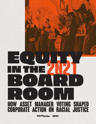 Despite the myriad of commitments corporations made in 2020 amidst the nation’s racial uprisings against racial injustice and police brutality, since then, many of these pledges have been reversed, unfulfilled, or quietly shelved. Asset managers have largely failed to hold corporations accountable to their commitments. In our new report, Equity in the Boardroom. How Asset Manager Voting Shaped Corporate Action on Racial Justice in 2021, produced collaboratively with Majority Action, we detail shows asset managers have: